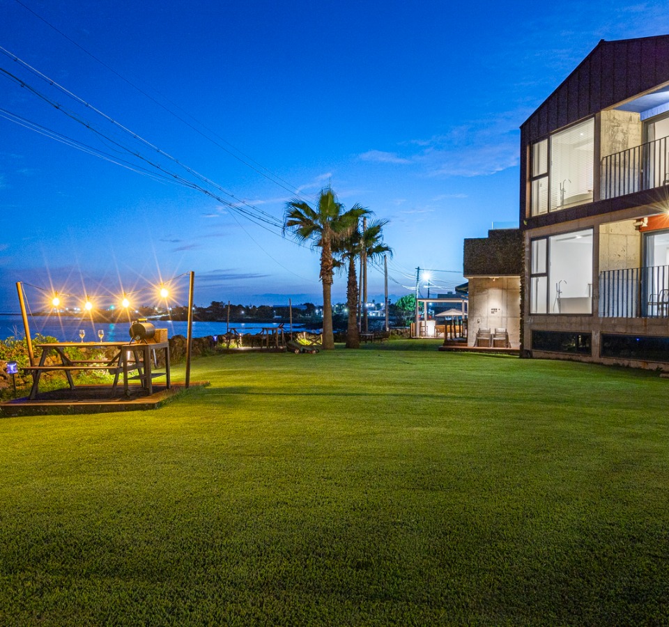 제주의 돌담으로 둘러 쌓인 야외 바베큐장. 제주의 풍미와 함께 제주 흑돼지 바비큐를 즐겨보십시요. 이용 시에는 당일 오전까지 예약 부탁합니다. [수용인원] 패밀리동 : 최대 인원 10명 커플동 : 최대 4명